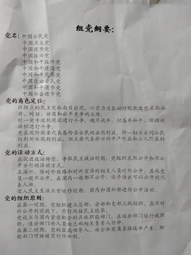 當時我提出了好幾個黨名,最後決定採納張林提出的正義黨作為黨名。中國正義黨海外籌備小組成立。我還草擬了時間表。